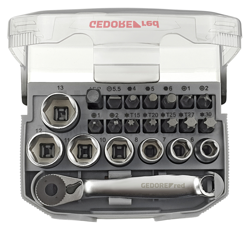 Gedore R49005023 Bitratel-dopsleutelset 1/4" met Bit-Fix.-adapter compact 23-delig