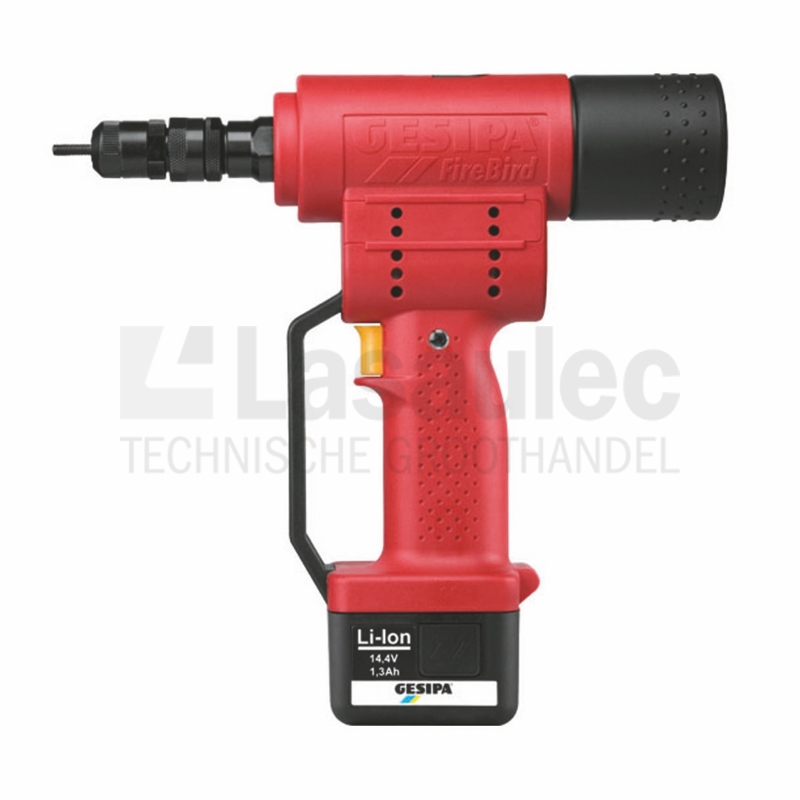 Blindklinkmoertang voor het plaatsen van blindklinkmoeren voorzien van een Li-ion accu, betrouwbare elektronica, geen mechanische schakelcomponenten en elektronische bescherming tegen oververhitting en overbelasting. De FireBird is Geschikt voor het plaatsen van aluminium, staal en RVS blindklinkmoeren met een schroefdraad van M3 t/m M6, aluminium en staal M8 blindklinkmoeren en aluminium M10 blindklinkmoeren.