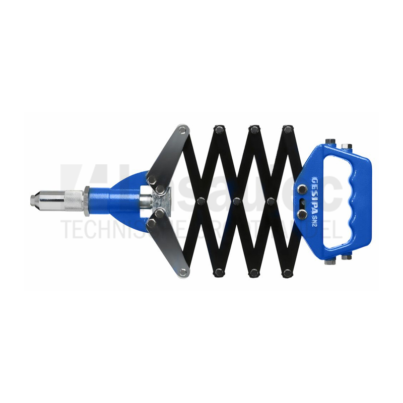 De harmonicatang GESIPA SN-2 is een professionele tang voor het plaatsen van blindklinknagels. Te gebruiken voor zowel reparatie doeleinden als in de productie. De tang wordt geleverd compleet met neusstukken voor de popnagels die met deze tang geplaatst kunnen worden.