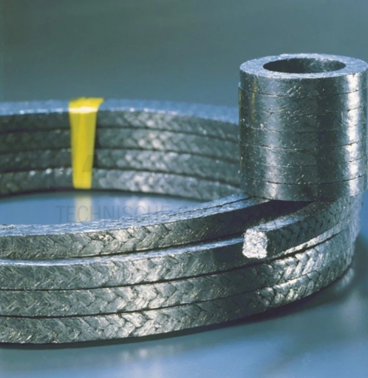 Gevlochten geëxpandeerd grafiet ommanteld met Inconel draden, geimpregneerd met een speciale grafietmix, en v.z.v. een corrosie inhibitor.