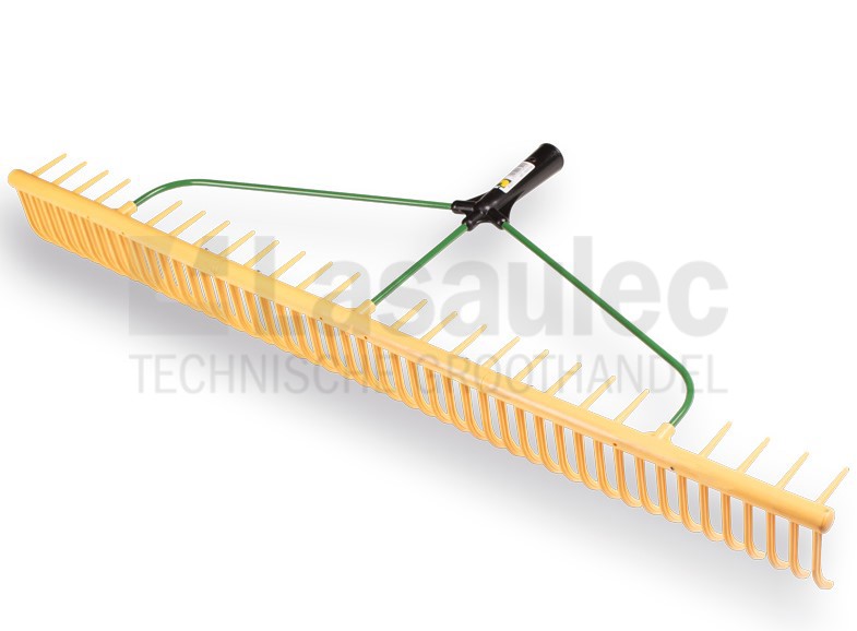 Grashark kunststof met 48 gebogen tanden en 16 haakse tanden. Breedte 94cm. Merk JOST. Geschikt voor het opharken van gras en mos. Licht gewicht.