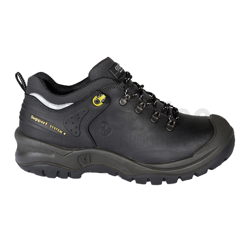 Veiligheidsschoen vervaardigd uit waterafstotend leder, voorzien van een watertong, stalen neus en Kevlar tussenzool, Cambrelle voering, versteviging bij de hiel voor extra steun, overneus, uitneembare inlegzool en een loopzool van polyurethaan en nitril, die bescherming biedt tot 300 °C contactwarmte. Deze is bovendien voorzien van een antislip profiel.