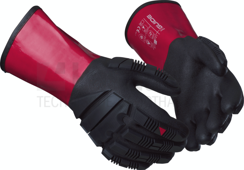 Handschoen met chemische bescherming, voor offshore omgevingen. Gecoat met een drielaags vloeistofdicht nitril/PVC-mengsel. Geschikt voor omgevingen waarin chemicaliën voorkomen. De handschoen heeft stootbescherming aan de bovenzijde en snijbeschermingsniveau C. Goedgekeurd voor contacthitte niveau 2 en chemische bescherming volgens ISO374-1 Type A