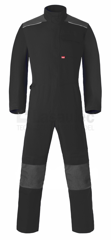 Verdekte ritssluiting met verdekte drukknopen, dijbeenzak met verdekte drukknoopsluiting, duimstokzak met rolmaatzakje, Cordura® kniezakken met klittenband afsluitbaar, 1 achterzak met verdekte drukknoopsluiting, rugplooien, 1 borstzak met verdekte drukknoopsluiting, rugelastiek, reflecterende piping, ingezette voorzakken, D-ring, extra inzet bij kruis ter voorkoming van uitscheuring, verdekte drukkers aan de mouw.