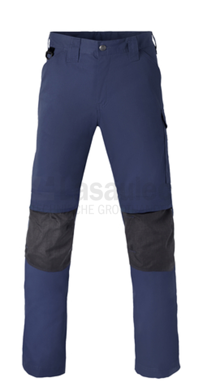 Werkbroek voorzien van verdekte ritssluiting, dijbeenzak met verdekte drukknoopsluiting, 2 ingezette zijzakken, duimstokzak met rolmaatzakje, verstelbare elastiek in taille, Cordura® kniezakken, 1 achterzak met verdekte drukknoopsluiting, reflecterende piping, D-ring en extra inzet bij kruis ter voorkoming van uitscheuring.