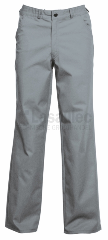 Werkbroek voorzien van een ritssluiting, 2 ingezette zijzakken, 2 achterzakken waarvan 1 met knoop, duimstokzak en elastiek in rug .