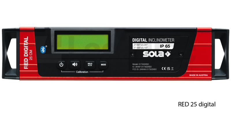 De digitale waterpassen RED 60 DIGITAL, RED 120 DIGITAL, RED 180 DIGITAL evenals de REDM 60 DIGITAL zijn uitgerust met de gepatenteerde SOLA FOCUS libel (rechts afgebeeld). Deze libel van acrylglas beschikt over een geïntegreerde vergrotingslens (+60%) en biedt in vergelijking met een ringlibel een duidelijk hoger contrast. Daarom kan men hiermee sneller, nauwkeuriger en beter meten. De meettolerantie ligt op 0,5 mm/m in standaardpositie en omslagmeting. Verdere kwaliteitskenmerken: De waterpasvloeistof is antistatisch en heeft een zeer goede lichtbestendigheid.