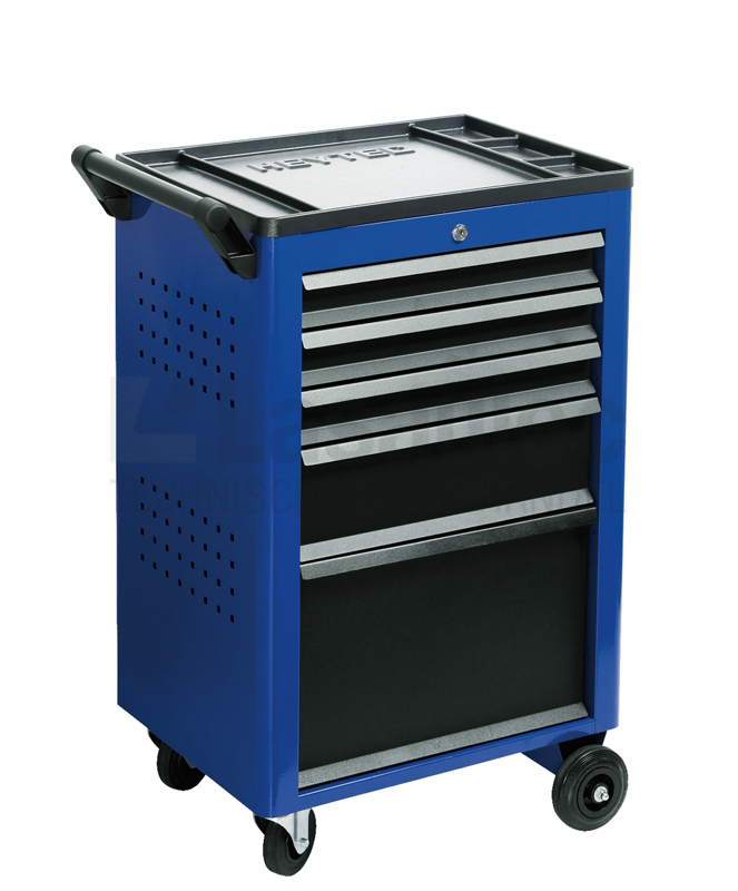 Stabiele metalen constructie, torsiebestendig en geschikt voor zware belastin, 5 kogelgelagerde schuifladen, groot opbergvak voor apparaten, machines etc., centrale vergrendeling met cilinderslot