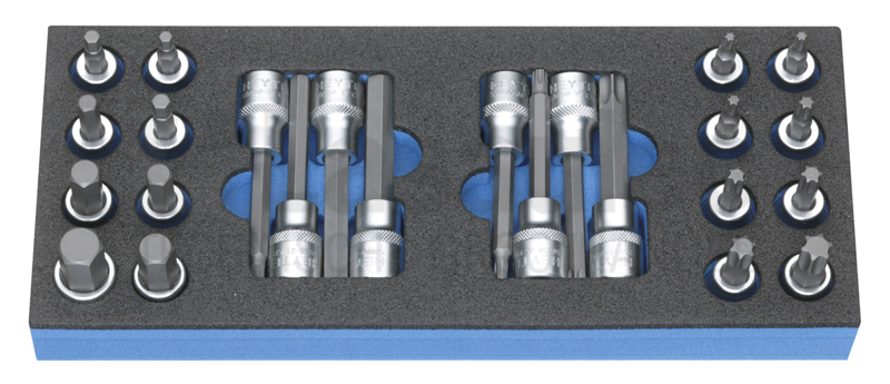 - Schroevendraaier dopsleutels , 1/2", T 30, T 40, T 50, T 60, T 25, T 27, T 30, T 40, T 45, T 50, T 55, T 60