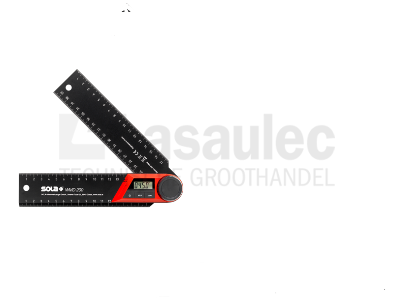 Met behulp van de digitale hoekmeter WMD van SOLA kunt u snel en eenvoudig hoeken meten, tekenen en overbrengen met een nauwkeurigheid van ±0,3°.