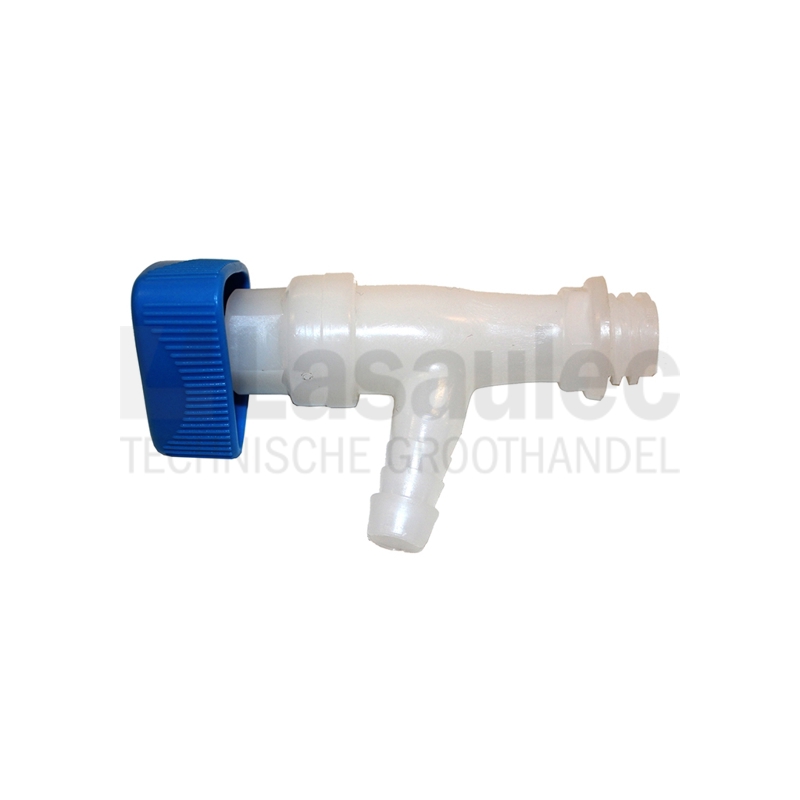 22 mm hoekventiel met brede schroefdraad. Axiaal, natuur. Met koppeling voor tuit. Is bestand tegen chemicaliën en zuren.