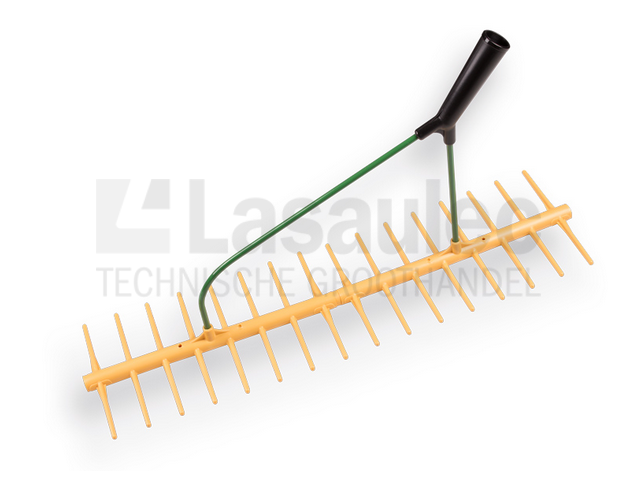 Polyhark, hooihark kunststof met aan beide zijden 16 tanden. Schuin model, zonder steel. Breedte 64cm. Voor veelzijdig harken van licht tuinafval en gemaaid hooigras van de slootkant naar het vlakke grasland. Licht gewicht. Merk JOST