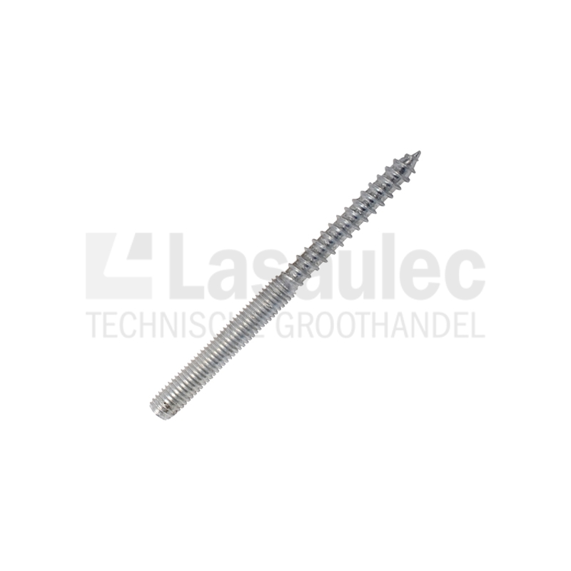 Houtdraadpen (stokeind) met aan de ene zijde voorzien van houtdraad en andere andere metrische draad.