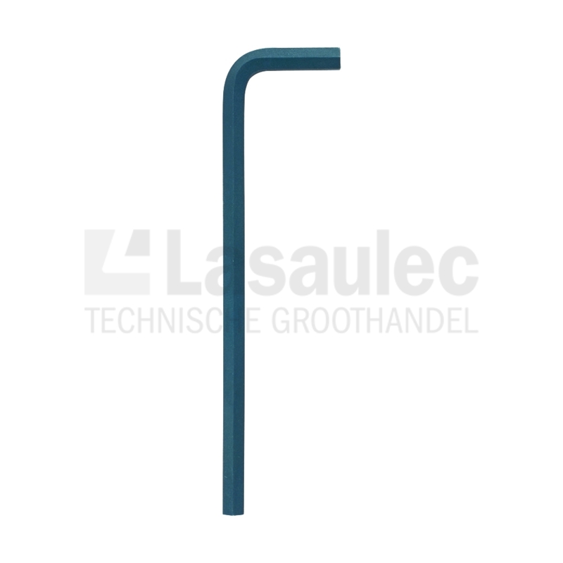 Haaks uitgevoerde inbussleutel vervaardigd uit onbehandeld zwart staal.