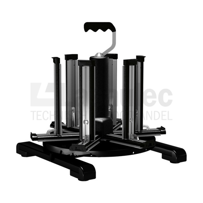 Apparaat dat geschikt is voor het afrollen van flexbuis en diverse soorten kabelringen nog verpakt in doos of folie. Met deze afroller kunt u eenvoudig kabels trekken zonder last te hebben van spiraalvorming. Er ontstaat een enorme tijdwinst, omdat men gemakkelijk alleen kan werken. Doordat de kabel van binnenuit wordt afgewikkeld blijft de folie verpakking in tact en kan er dus gemakkelijk van kabelring gewisseld worden zonder dat de verschillende kabels in de war raken. Ook het transporteren en opslaan van de Spinner met de kabelring en al gaat moeiteloos, omdat deze niet meer ruimte in beslag neemt dan de kabelring zelf. Onderzijde voorzien van vier rubberen anti slip buffers.