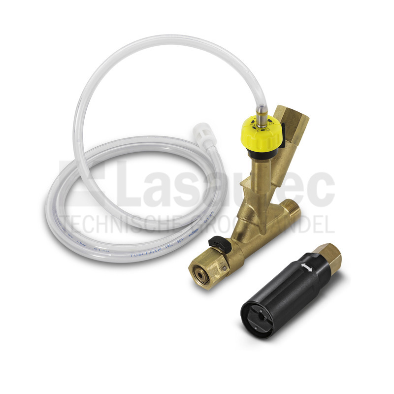 De Kärcher Easy Foam-set met RM-injector is het ideale schuimsysteem voor gebruik met Kärcher HD- en HDS-eenheden. Dankzij de geïntegreerde RM-injector met 0–5 % precisiedoseerventiel brengt u reinigingsmiddel direct tijdens de reiniging exact doserend in.