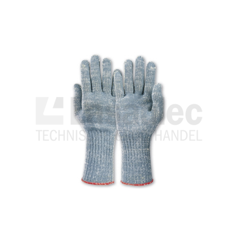 Hittebestendige handschoen vervaardigd van para-aramide en katoen om de best mogelijke bescherming te bieden tegen contact hitte tot 100 °C en biedt tevens een uitstekende bescherming tegen snijwonden en mechanische gevaren. Symmetrische ontwerp maakt de handschoen bijzonder zuinig en is voorzien van markering volgens grootte door verschillende kleuren op de polsband, licht thermische isolatie, uitstekende gevoeligheid, extra bescherming bij polsaderen, goede zweetabsorptie en hoog draagcomfort.