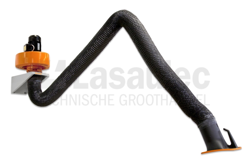 Deze afzuigset bestaat uit een afzuigarm in slanguitvoering met een lengte van 4 meter inclusief een wandconsole en een ventilator met bijbehorende motorbeveiligingsschakelaar. Deze afzuigset kann men overal toepassen waar een filtering van de lucht niet noodzakelijk is. KEMPER afzuigarmen zijn uitermate geschikt voor het afzuigen van lasrook, gassen, dampen en andere lichte stoffen óf oplosmiddelen. De afzuigarm in slanguitvoering is een vrijdragende afzuigarm welke in elke gewenste positie blijft staan, na montage van de afzuigarm benodigt deze geen enkel onderhoud meer. De ventilatoren zijn speciaal voor het afzuigen van de afzuigarmen ontwikkeld. Het slakkenhuis bestaat volledig uit gietsilumin welke niet alleen een robuuste uitstraling geeft meer tevens het geluid absorbeerd. Het schoepenwiel is statisch en dynamisch gebalanceerd. De afzuigcapaciteit is optimaal en het geluidsniveau zeer gering. De ventilatoren zijn voorzien van een poedercoating. Levering inclusief een verbindingsset voor het aansluiten van een uitblaasleiding.