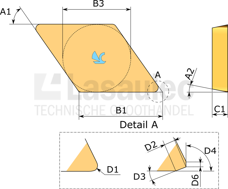 Hardmetaalsoort: KCM15, een nanogestructureerde PVD TiAlN-gecoate fijnkorrelige hardmetaalsoort met een gouden TiN-toplaag, wat zorgt voor verbeterde slijtageherkenning en een superieure oppervlakteafwerking.