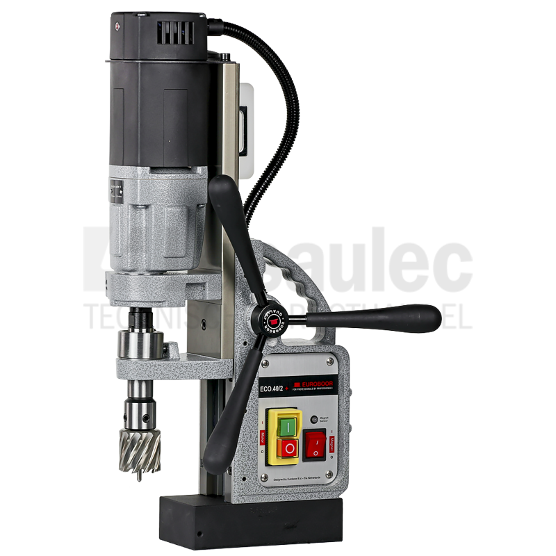 Onze compacte Euroboor ECO.40/2+ is de perfecte magnetische kernboormachine voor kernboren tot 40 mm (1 9/16″) en spiraalboren tot 13 mm (1/2″). De innovatieve elektronica in deze magnetische kernboormachine bieden meer veiligheid, zorgen voor een aanzienlijke vermindering van de risico’s op beschadiging van de machine, gereedschap en werkstuk én de gebruiker beschermen bij overmatige trillingen of plotselinge verplaatsing. De levensduur is aanzienlijk langer en hoge onderhoudskosten worden voorkomen. Deze lichte en betrouwbare magneet boormachine is een ware toevoeging voor iedere werkplek.