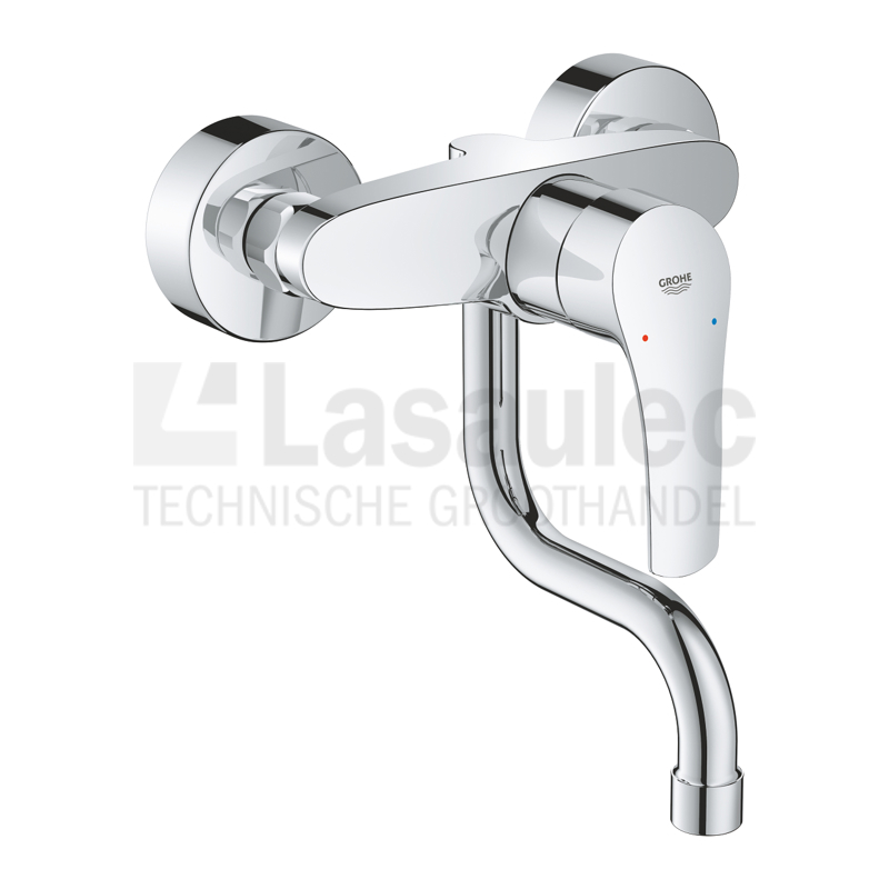 Een eigentijds design met veelzijdige functies; de GROHE Eurosmart keukenkraan is de ideale upgrade voor je keukenontwerp. De kraan monteer je naadloos aan de wand en maakt jouw keukentaken door zijn vernieuwde design nog eenvoudiger. Dankzij de draaibare uitloop bereik je voortaan met een simpele beweging elke hoek van de spoelbak voor een hygiënische reiniging en ook de vaat is in een mum van tijd afgespoeld. De kostenbesparende debietbegrenzer zorgt ervoor dat je zuinig omgaat met je waterverbruik, terwijl de temperatuurbegrenzer extra veiligheid garandeert door verbranding door heet water te voorkomen. De supersterke GROHE Long-Life afwerking is krasbestendig en zorgt ervoor dat het chroomoppervlak er elke dag uitziet als nieuw. Voor deze GROHE Eurosmart keukenkraan wordt een druk van minimaal 1,0 bar aanbevolen. De keukenkraan wordt geleverd inclusief S-koppelingen.