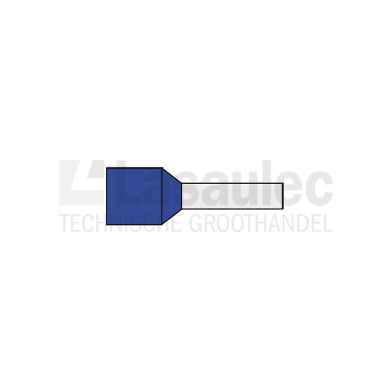 Klemko KL-D DK adereindhuls, koper, blauw, nom. doorsnede 16mm², bouwvorm standaard, hulslengte 12mm, penlengte 12mm, 1 ader, oppervlaktebescherming vertind, halogeenvrij, isolatie polypropyleen (PP), geïsoleerd.