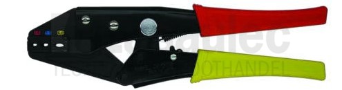 Deze sperkrimptang is ideaal voor het verwerken van geïsoleerde kabelschoenen. Alle diktes tussen 0,5mm2 en 6,0mm2 worden gekrompen door de verschillende krimpbekken. Deze bekken zijn met kleur gecodeerd om het gebruiksgemak te verhogen.