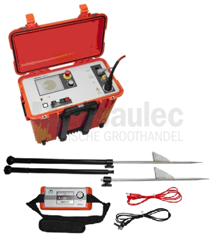 Bestaande uit: Mantelfout-lokalisatieapparaat 10kV, PC-software, aardfoutzoekapparaat ESG 80-NT, 2 x aardspies voor ESG, 2 meetleidingen 2 meter, kabelset en tas voor ESG 80-NT.