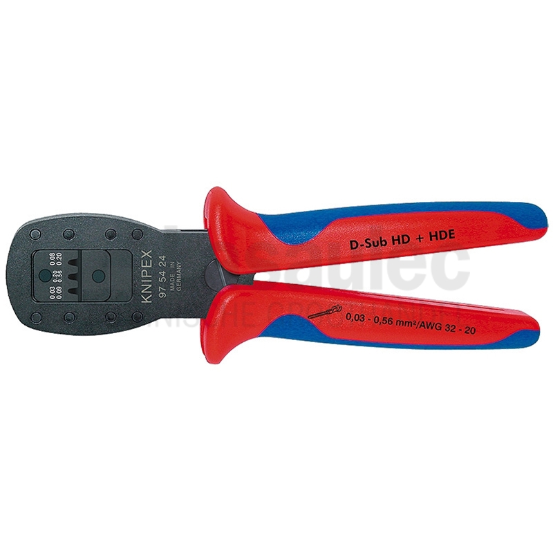 Krimptang vervaardigd uit speciaal staal, in olie gehard en getemperd, voorzien van parallel staande krimpbekken om te voldoen aan de bijzonder hoge vereisten van kleine verbinderstypen. Ten behoeve van soldeervrije, elektrische verbindingen, constant hoge krimpkwaliteit door precisieprofielen en dwangsluiting (ontgrendelbaar), met gemonteerde positioneerhulp voor D-Sub-miniatuurstekkers voor een exacte positiebepaling van verbinder en kabel, krimpdruk is in de fabriek nauwkeurig ingesteld (gekalibreerd), krachtversterking door kniehefboom voor een moeiteloos werk. Kop gebruineerd, benen met tweekleurige meer-componentengrepen bekleed.