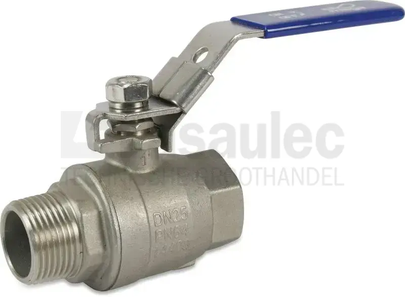 2-delige RVS kogelkraan met PTFE afdichtingen, binnen x buitendraad.
