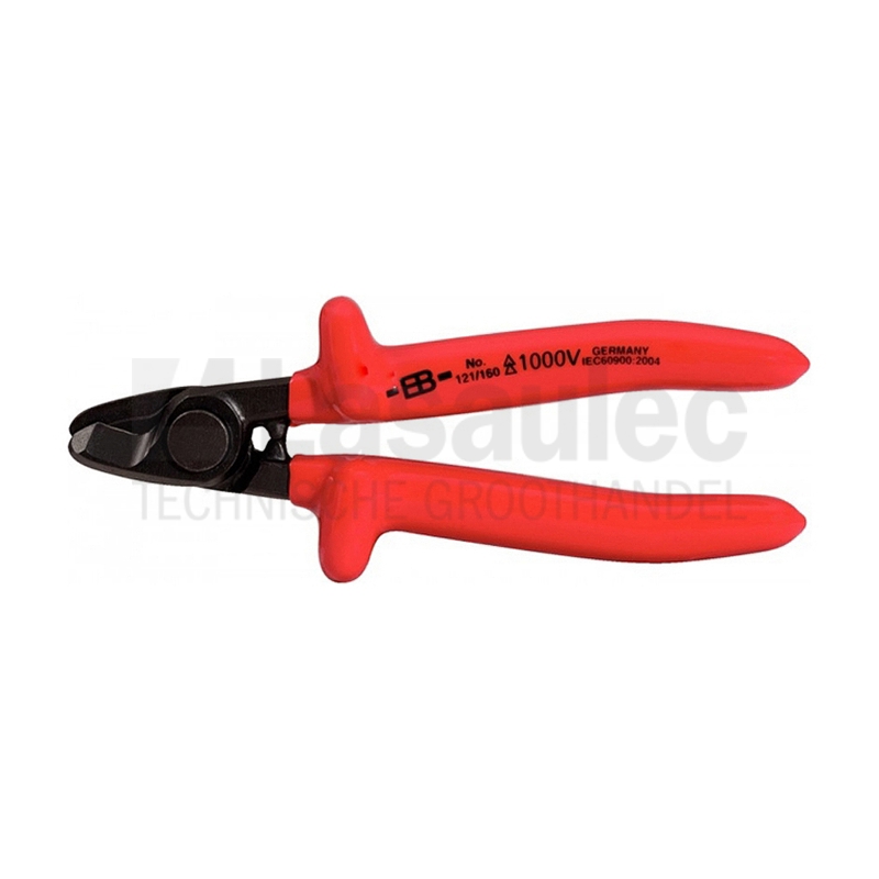 Kabelschaar éénhandbediening vervaardigd uit speciaal gereedschapstaal. Geschikt voor het knippen van één en meeraderige koper- en aluminium kabel, niet geschikt voor staaldraad en hardkoperen leidingen. Voorzien van VDE isolatie volgens IEC 60900 en nastelbaar schroefscharnier. Geen beschadigen van de kabel, geringe vervorming.