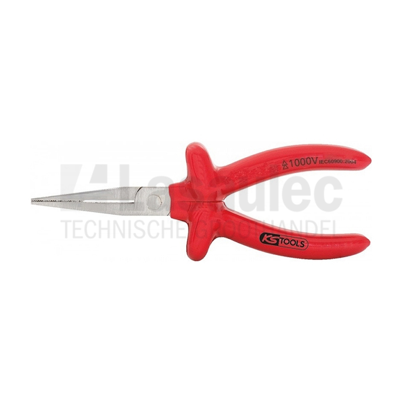 Platbektang met lange bekken vervaardigd uit mat verchroomd speciaal gereedschapstaal. Voorzien van VDE isolatie volgens IEC 60900 en met lange bekken.