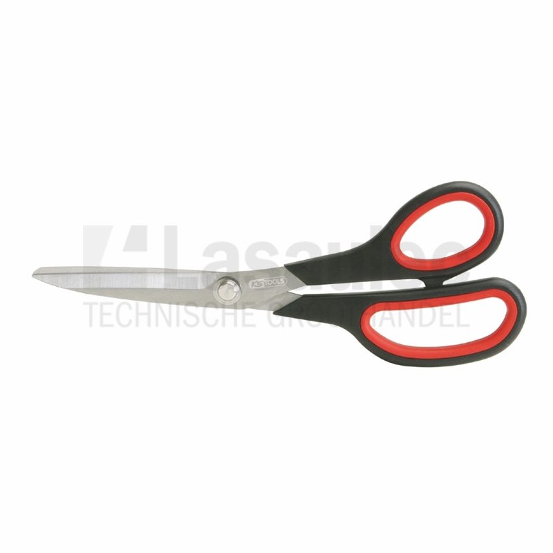 Universele werkplaatsschaar voorzien van lange robuuste snijvlakken met nastelbaar mes van edelstaal en met 2-componenten greep.