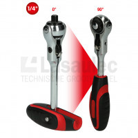 Zwenkkop: Verstelbaar in twee posities (0° en 90°) voor flexibele toepassingen als T-greep of rechte schroevendraaier.