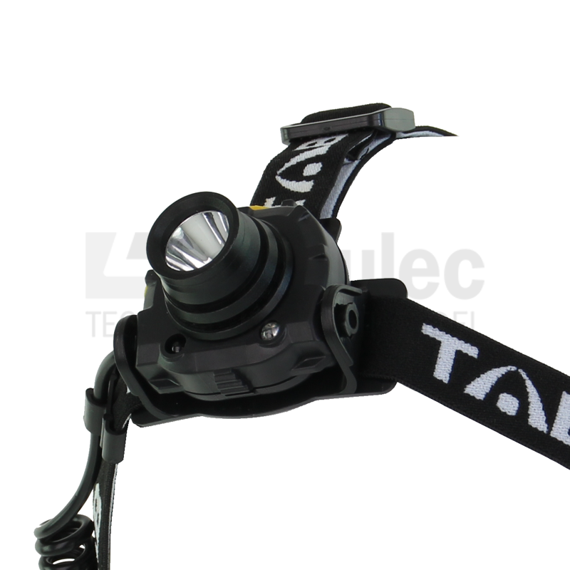 Lichtgewicht 5W LED hoofdlamp (140 Lm) met bewegingssensor, 3 x AAA (excl.). Verstelbare hoofdband en kantelbare lamp. Voor binnen en buiten, IP44.