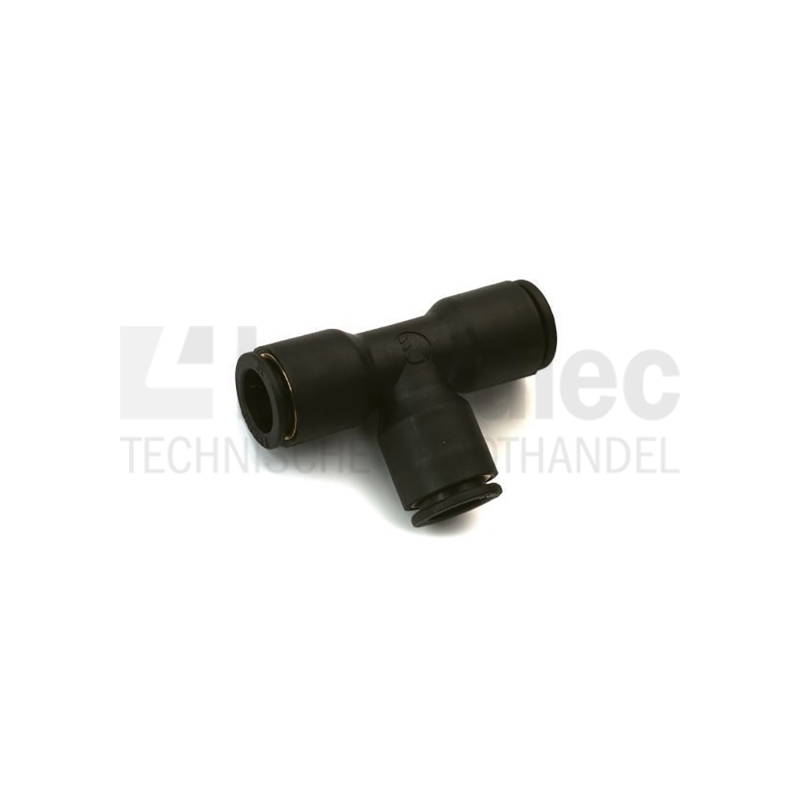 T-koppeling vervaardigd uit HR polymeer, voorzien van insteekaansluitingen.