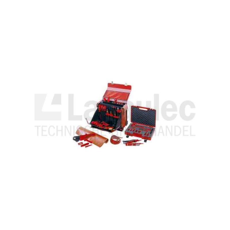 Gereedschapstas vervaardigd uit rundleer met 70-delige VDE gereedschapset.