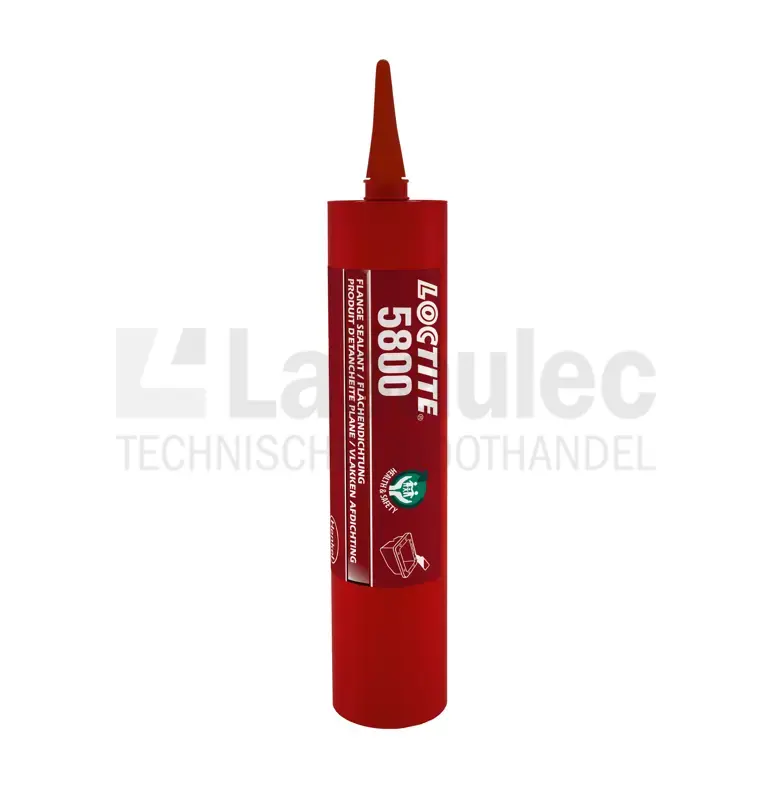 LOCTITE 5800 dicht nauwsluitende verbindingen tussen stijve metalen vlakken en flenzen af. Het hardt uit bij afwezigheid van lucht en ingesloten tussen nauwsluitende metalen oppervlakken. Het wordt gebruikt als een Form-In-Place pakking op stijve flensverbindingen. Het is bestand tegen lage druk onmiddellijk na montage. Het is niet voorzien van gevaarsymbolen, H- of P-zinnen en bevat geen aan te geven stoffen die kankerverwekkend, mutageen of giftig voor de voortplanting zijn (CMR-stoffen).