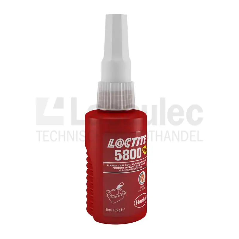 LOCTITE 5800 dicht nauwsluitende verbindingen tussen stijve metalen vlakken en flenzen af. Het hardt uit bij afwezigheid van lucht en ingesloten tussen nauwsluitende metalen oppervlakken. Het wordt gebruikt als een Form-In-Place pakking op stijve flensverbindingen. Het is bestand tegen lage druk onmiddellijk na montage. Het is niet voorzien van gevaarsymbolen, H- of P-zinnen en bevat geen aan te geven stoffen die kankerverwekkend, mutageen of giftig voor de voortplanting zijn (CMR-stoffen).