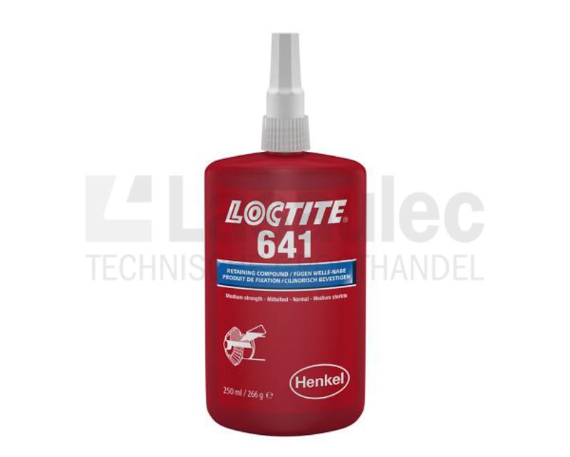 LOCTITE 641 is ontwikkeld voor het verlijmen van cilindrische passende onderdelen, in het bijzonder wanneer demontage vereist is voor onderhoudswerkzaamheden. Het product hardt uit bij afwezigheid van lucht en ingesloten tussen nauwsluitende metalen oppervlakken en voorkomt het loskomen en lekken door schokken en trillingen. Aanbevolen voor onderdelen die later gedemonteerd moeten kunnen worden, bijv. voor het bevestigen van lagers op assen en in behuizingen.
