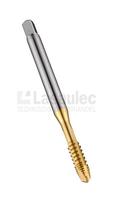 HSS-E machinetap voorzien van TiN coating en metrische schroefdraad met onderbroken vertanding.