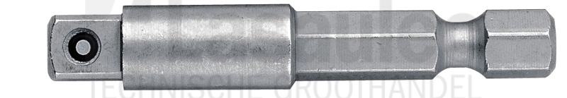Dophouder met 1/4" bitaansluiting en buitenvierkant voor het gebruik van doppen met een boormachine.