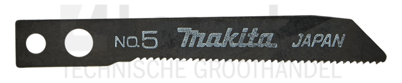 HSS decoupeerzaagblad No.5, gefreesd en gegolfd. Voor het recht zagen in dun materiaal: staalplaten, RVS, aluminium en harde kunststoffen.