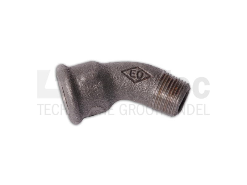 BSP binnendraad x BSP buitendraad, 45°. Thermisch verzinkt.