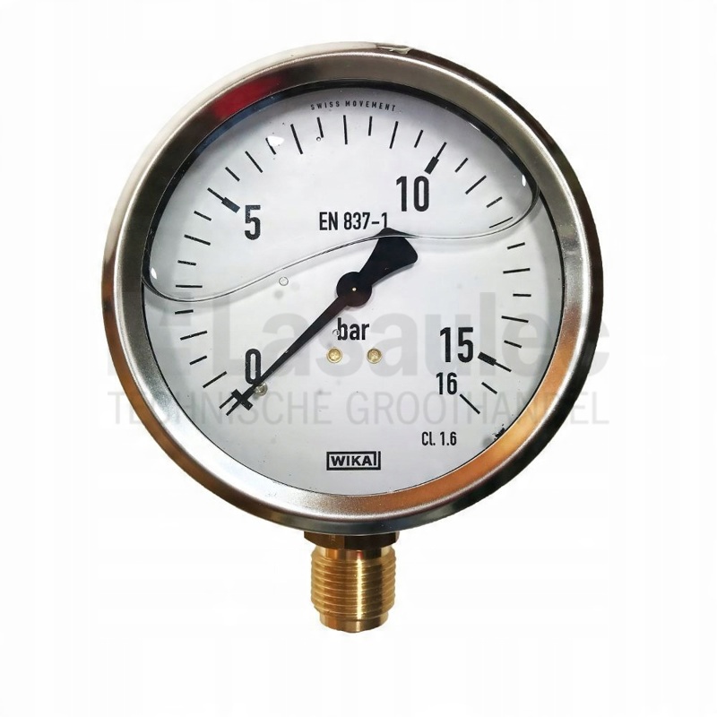 Manometer Wika 9020870 G1/2"OA 100mm 16 bar RVS glyc gev.