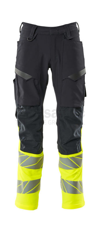 Fluorescerende contrastkleur met reflecties. Met een waterafstotende finish. Tweekleurig. Ultieme stretchstof met laag gewicht en goede slijtvastheid. Tweevoudig gestikte naden aan de broekspijpen en in het kruis. Lage taille. Verborgen knoopsluiting. Ergonomisch gevormde broekspijpen. Riemlussen. D-ring. Gulp met rits. Voorzakken. Achterzakken met versterking. Verstelbare hamerlus. Versterkte duimstokzak. Knop ter bevestiging van een mes. Zakken met klep aan de voorkant van de bovenbenen. Verstelbare kniezakken van duurzaam CORDURA® (500 D). Dijbeenzak met telefoonzak en klep met kli