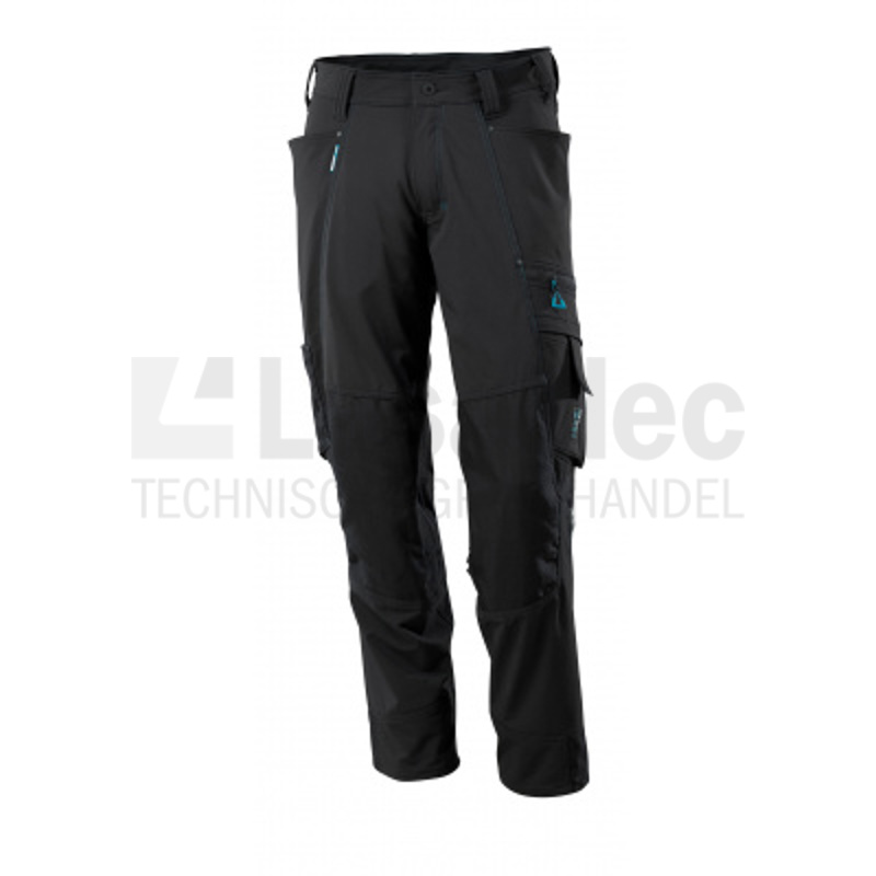 De Advanced werkbroek is gemaakt van een lichte, slijtvaste strechstof, in 4 richtingen rekbaar, met waterafstotende finish. Door de geïntegreerde zakken is het materiaal bijna niet merkbaar op de huid. Tweevoudig gestikte naden aan de broekspijpen en in het kruis. Lage taille. Ergonomisch gevormde broekspijpen. Riemlussen. Gulp met rits. Voorzakken. Achterzakken. Dijbeenzak met telefoonzakje en geïntegreerde ID-kaarthouder. Afneembare ID-kaarthouder. Duimstokzak van CORDURA® met extra zakken. Reflectie-effecten.