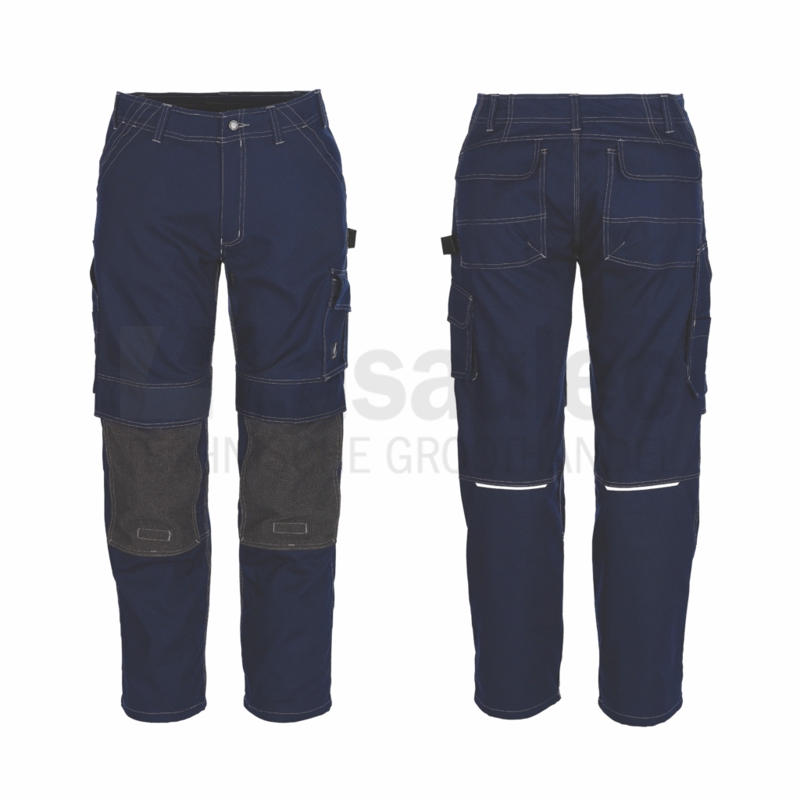 Werkbroek voorzien van tweevoudig en drievoudig gestikte naden aan de broekspijpen en in het kruis, lage taille en voorgevormde tailleband, ergonomisch gevormde broekspijpen, riemlussen, gulp met metalen rits, voorzakken, achterzakken met versterking en kleppen met klittenbandsluiting, verstelbare hamerlus, dijbeenzak met versterking, telefoonzak en klep met klittenbandsluiting, duimstokzak is versterkt, inclusief klein zakje aan de buitenkant, pennenzakje, kniezakken van Kevlar met klep en opening aan de bovenzijde, canvasstructuur met stretch, contraststiksels en reflectie-effecten.