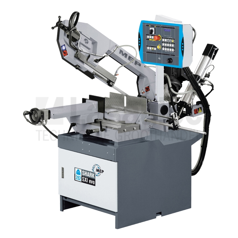 halfautomatische elektro-hydraulische bandzaagmachine, zware uitvoering met volledig gietijzeren zaagbeugel. Geschikt voor het zagen van massief en dik-en dunwandige materialen zoals roestvrijststaal, staal, lichtmetaal, legeringen, aluminium, brons en koper.