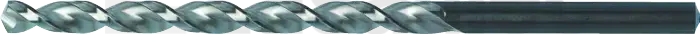 Metaalboor DIN 340, type TS met sterke spiraalhoek en een cil. schacht. Lange uitvoering met kruisaanslijping tot 3 mm,vanaf 3 mm met S-aanslijping, tophoek 130°.